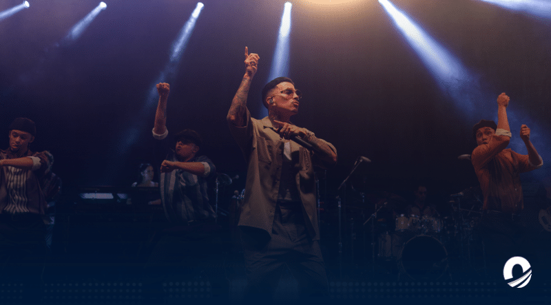 Vestido con traje y gafas de sol, Rauw Alejandro aseguró sobre el escenario que «llegaron las Navidades a Puerto Rico», ya que, como anunció, este concierto gratuito fue un regalo navideño para el pueblo puertorriqueño.