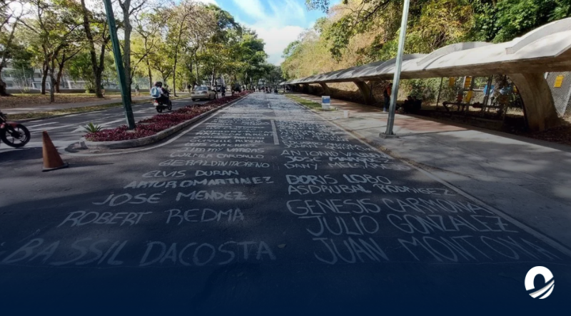 Con el lema “¡Prohibido olvidar!”, los ucevistas se unieron para plasmar en las calles que conducen a la Ciudad Universitaria, desde la Puerta Tamanaco, los nombres de muchos de los jóvenes fallecidos en esta lucha.